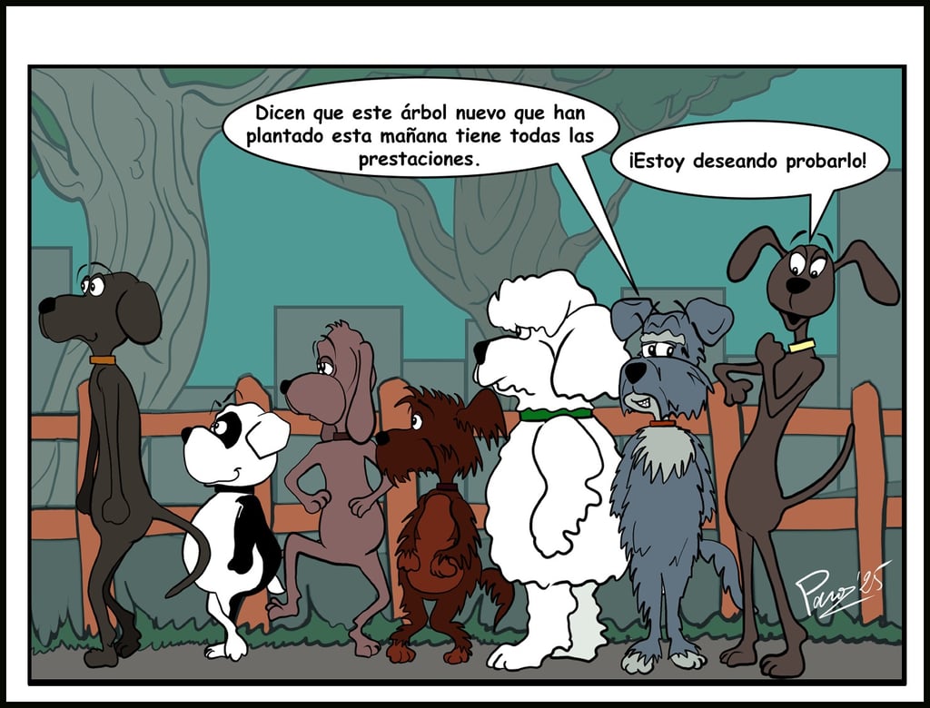 Este es un pipican, el auténtico Club Canino del Cotilleo, donde los perros no solo hacen sus necesidades, sino también se relacionan. Aquí se olisquea más información que en la redacción de un periódico, y cada poste metálico es una columna de opinión.