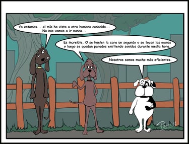 Este es un pipican, el auténtico Club Canino del Cotilleo, donde los perros no solo hacen sus necesidades, sino también se relacionan. Aquí se olisquea más información que en la redacción de un periódico, y cada poste metálico es una columna de opinión.